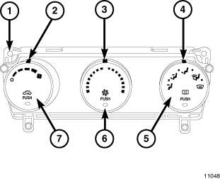 - a push-button control with indicator lamp to turn the A/C system on and off (6).