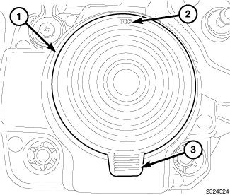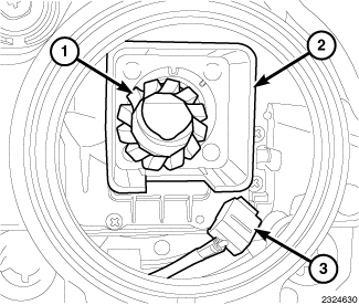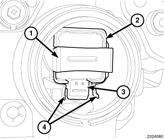 1. If the coiled metal grounding ring is not engaged on the insulator at the base of the lighting element, retrieve the grounding ring (1) from the igniter receptacle (2). Also be certain the high tension cable connector (3) is accessible and, if necessary, retrieve it from within the front lamp unit housing.