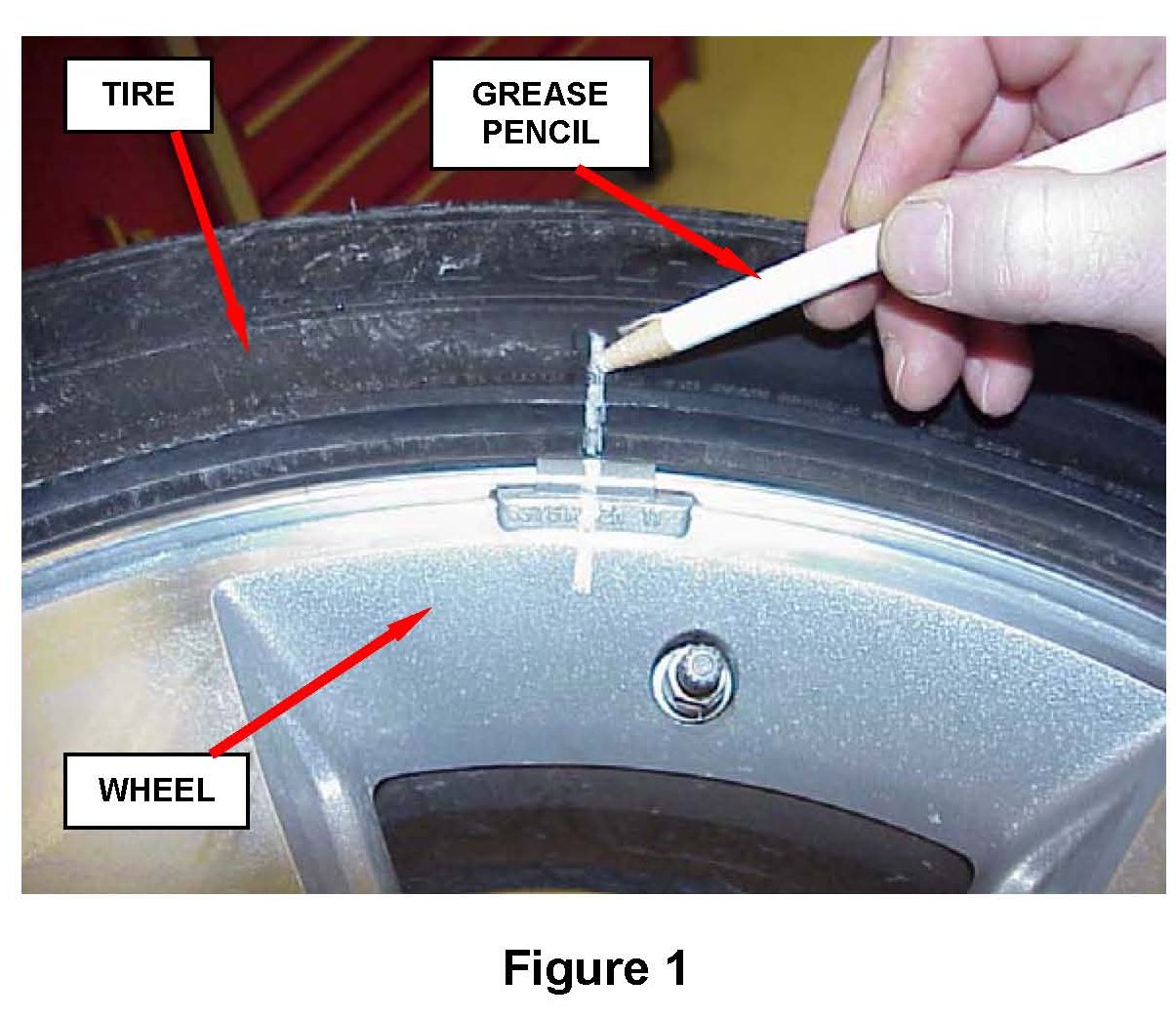 3. Mark the location of the tire to the wheel and the wheel weight to the wheel (Figure 1).