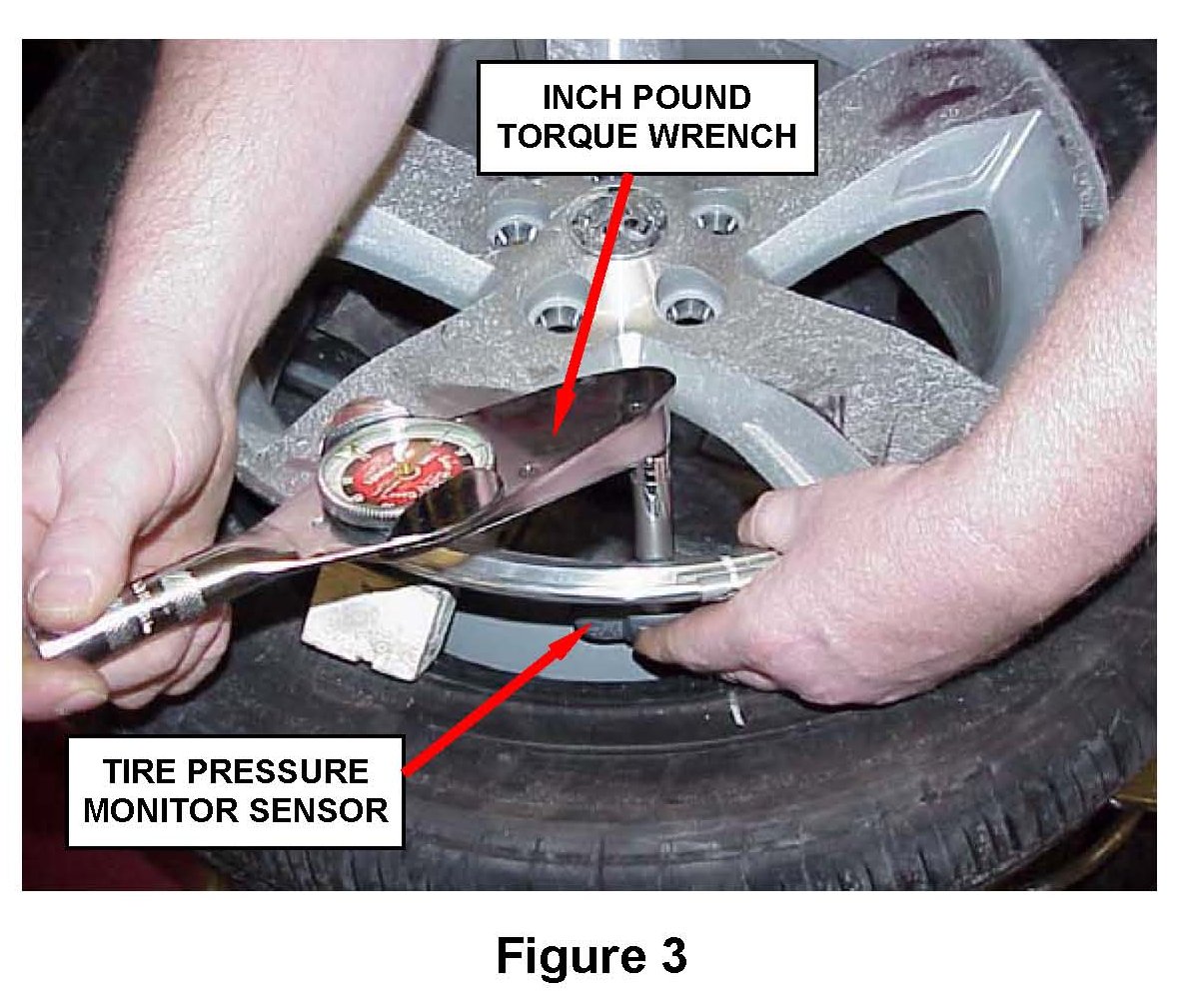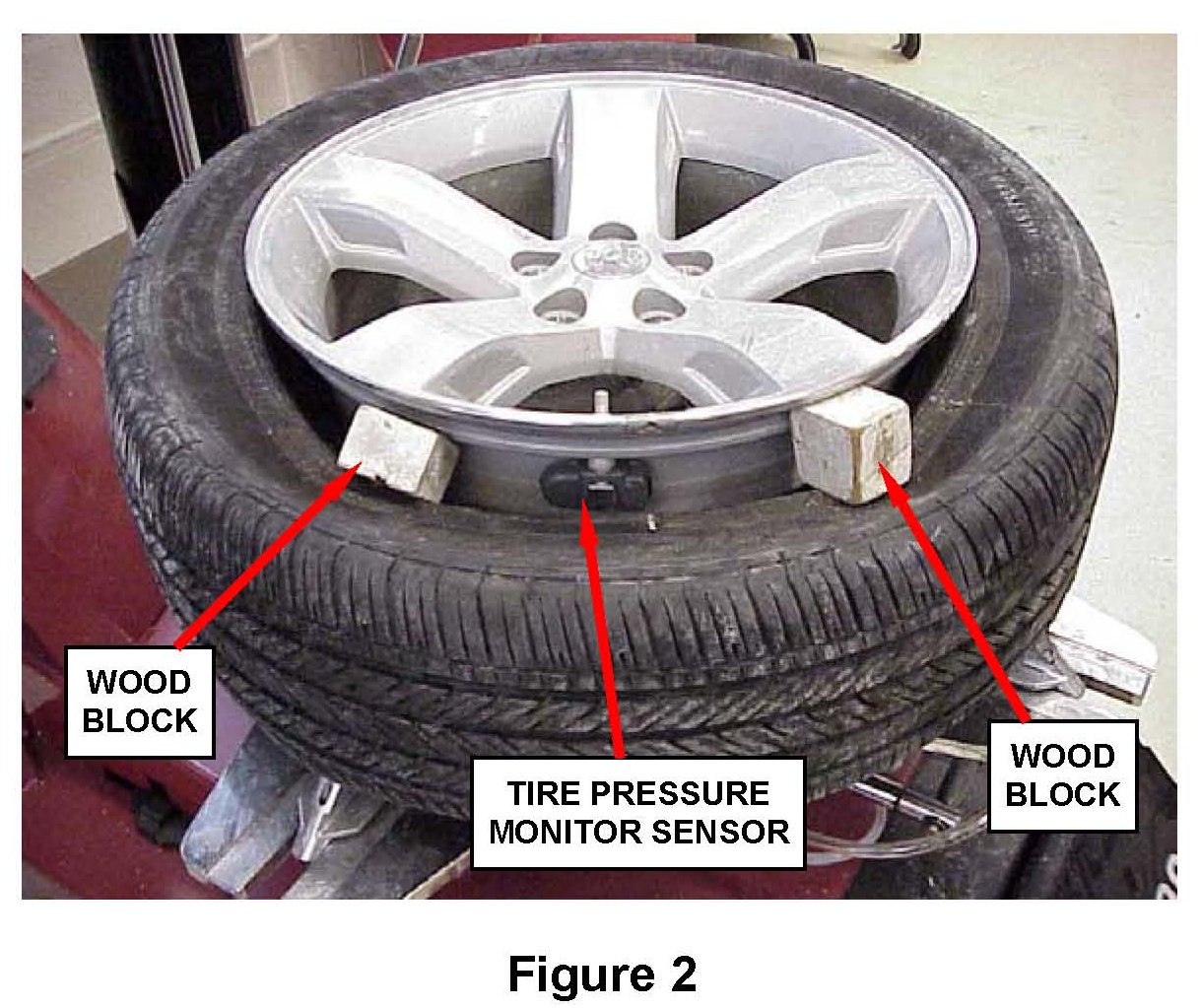6. Push the sidewall of the tire down at the sensor and place two small blocks of wood between the tire and rim (Figure 2).