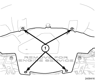 5. Remove the lower splash shield retaining bolts (1) and the splash shield.