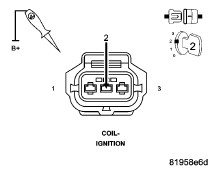 1. Using a 12-volt test light connected to 12 volts, check the Ignition Coil control circuit for the cylinder being tested in the Ignition Coil harness connector.