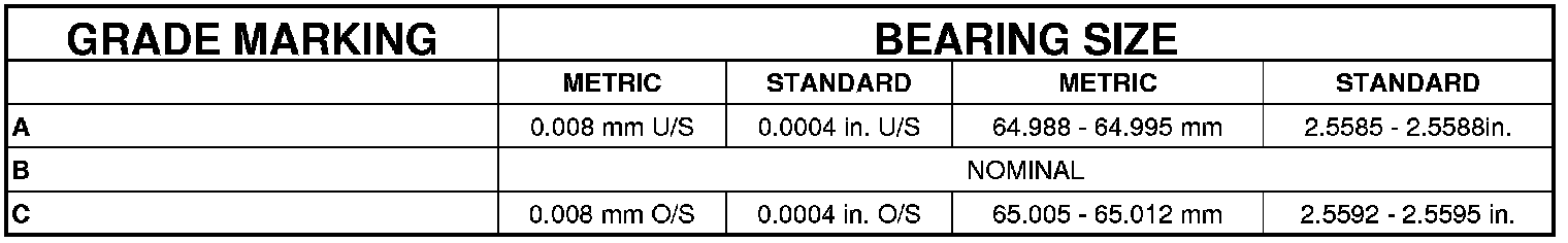 Main Bearing Journal Diameter 64.988-65.012 mm (2.5585-2.5595 in.)