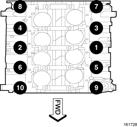 Tighten main bearing cap bolts to 13 Nm ( 10 ft. lbs.) in the sequence shown.