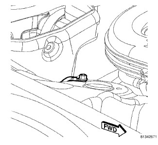 3. Install the fastener securing the battery negative cable to the transmission housing. Tighten the bolt to 11 Nm (8 ft. lbs.).