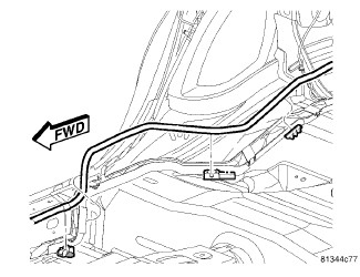 1. Position the battery positive cable in the vehicle taking care to route the cable under the floor cross members.