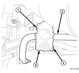 16. Install stabilizer bar heat shield (3) over stabilizer bar bushing retainer. Install mounting screws (1).