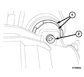 11. Using a 14mm hex, remove rear axle fill plug (1). Fill axle with 1.2L (1.3 qts.) of Mopar(R) 75W-140 Synthetic Gear AND Axle Lubricant. Install fill plug and torque to 50 Nm (37 ft. lbs.).