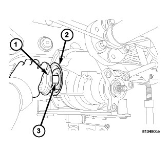 NOTE: Use care when installing halfshaft to axle assembly. The halfshaft installation angle should be minimized to avoid damage to seal upon installation.
