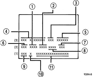 There are seven lines of information on the body code plate. Lines 4, 5, 6, and 7 are not used to define service information. Information reads from left to right, starting with line 3 in the center of the plate to line 1 at the bottom of the plate.
