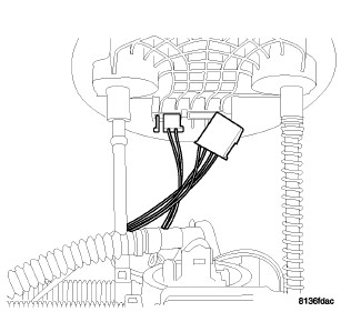 4. Connect the electrical connectors for right side fuel level sending card, left side module card and fuel pump.