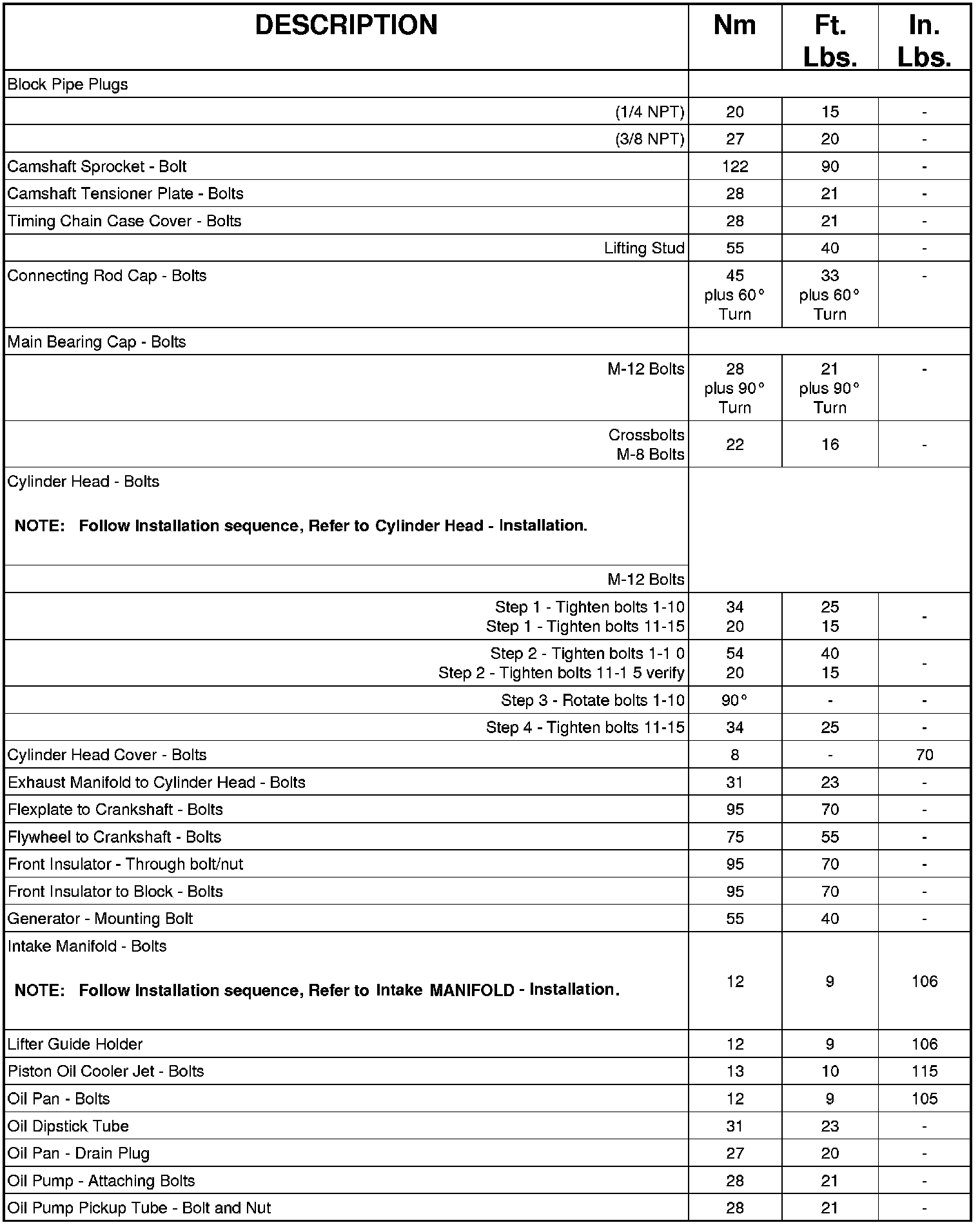Engine Torque Specifications