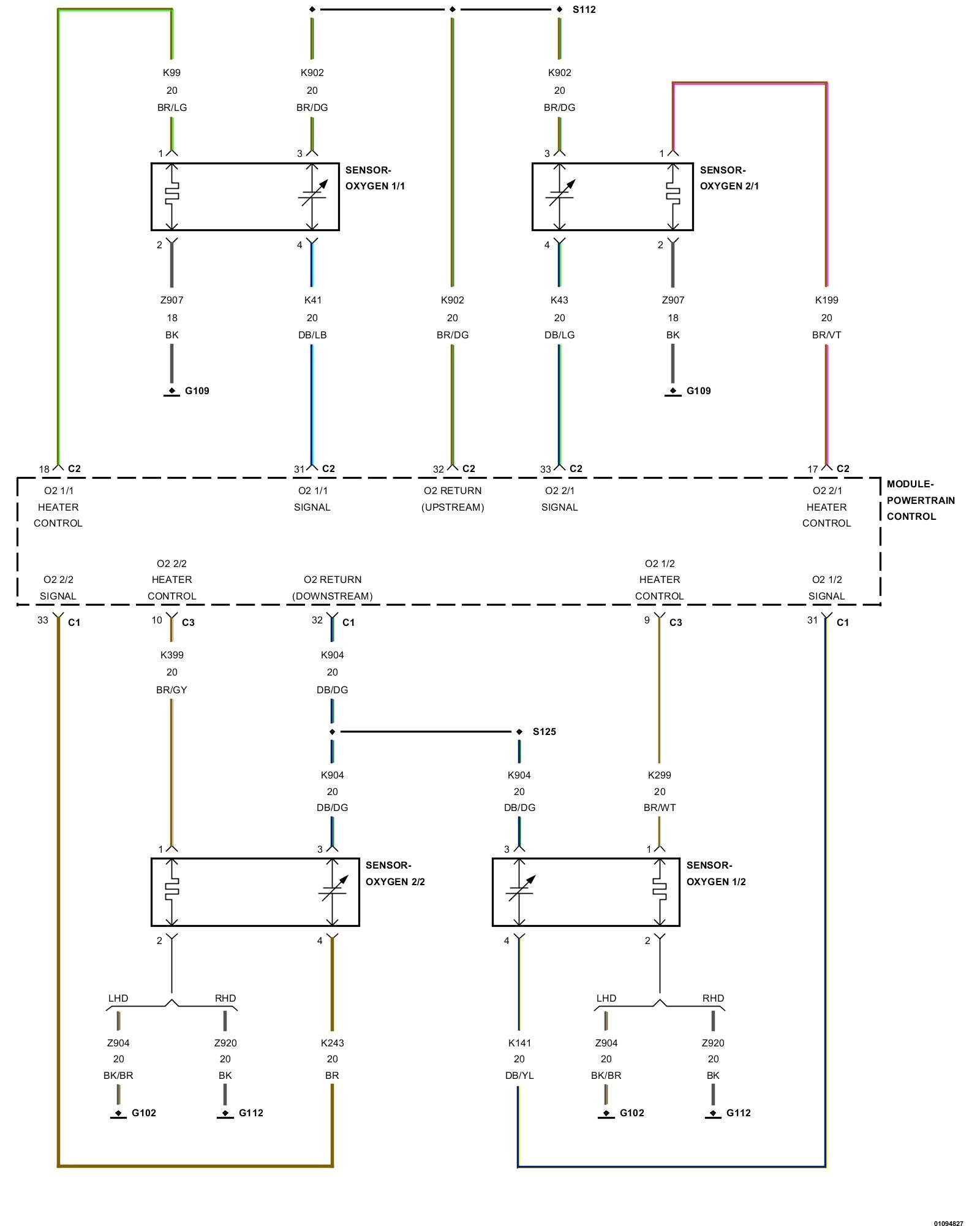 2. Using the wiring diagram/schematic as a guide, inspect the wiring and connectors between the Oxygen sensor and the Powertrain Control Module (PCM).
