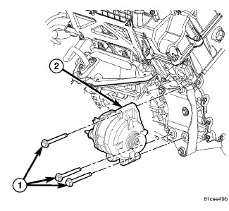 6. Remove mounting bolts (1) from generator (2).