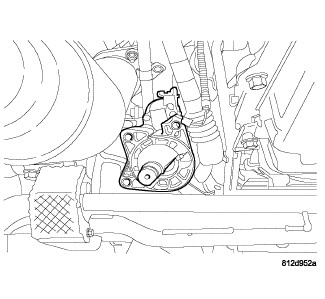 8. Install starter and starter bolts. Tighten bolts to 54.2 Nm (40 ft. lbs.).