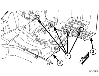 17. Install rear support (3) to transmission. Tighten bolts to 47 Nm (35 ft.lbs.).