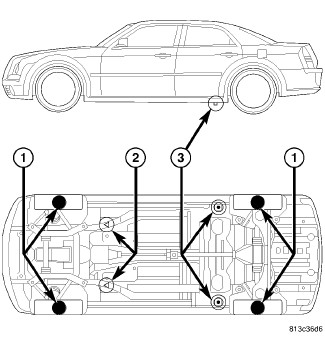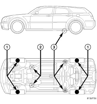 WARNING: THE HOISTING AND JACK LIFTING POINTS PROVIDED ARE FOR A COMPLETE VEHICLE. WHEN THE ENGINE OR REAR SUSPENSION IS REMOVED FROM A VEHICLE, THE CENTER OF GRAVITY IS ALTERED MAKING SOME HOISTING CONDITIONS UNSTABLE. PROPERLY SUPPORT OR SECURE VEHICLE TO HOISTING DEVICE WHEN THESE CONDITIONS EXIST.