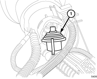 3. Install fuel pressure regulator (1) and ground ring. Note location of ground ring.