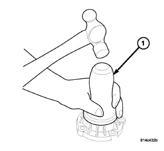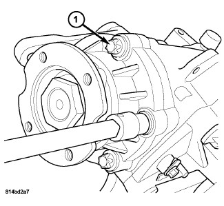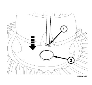 2. Using suitable punch, install new roll pin and install flush to differential case (1).
