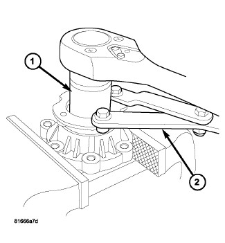 8. Using Spanner Wrench 6958 (2), install pinion flange nut and torque to 475 Nm (350 ft. lbs.).