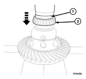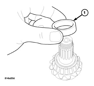 4. Install pinion bearing select spacer (1) removed upon disassembly. Spacer thickness will be measured/verified at end of assembly.