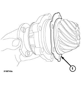 11. Install pinion housing assembly into axle housing with proper pinion depth shim (1). Adjustments