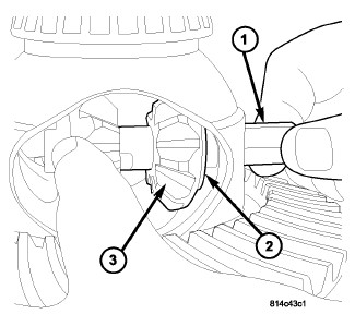 1. Install pinion shaft (1), pinion gears (3) and thrust washers (2).