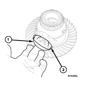 2. Install side bearing preload shim (2) into axle housing (1).