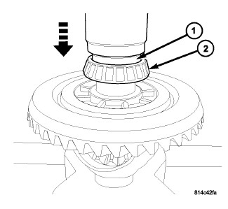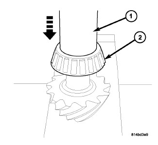 5. Using Installer 9665 (1), install new differential side bearing (opposite side).