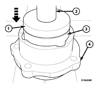 3. Using Handle C-4171 (4) and Installer D145 (3) press new side bearing cup (2) into housing (1) until it bottoms.