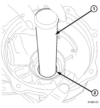 1. Using Installer L-4507(1), install new axle seal (inner) (2) into housing.