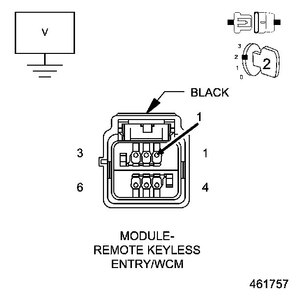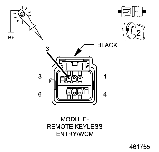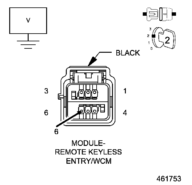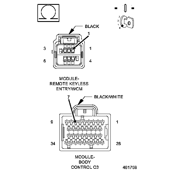 1. Using a 12-volt test light connected to 12-volts, check the (Z943) Ground circuit in the RKE module connector.