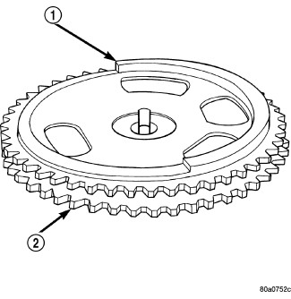 The camshaft position sensor detects when a step down in the camshaft sprocket passes beneath it. When the sensor detects the step down, the input voltage from the sensor to the PCM switches from low (0.3 volts) to high (5 volts). As the step up returns to the sensor, the input voltage switches back to low (0.3 volts). The paper spacer is not used on this vehicle. Don't use at all it plugs up the oil pickup screen.