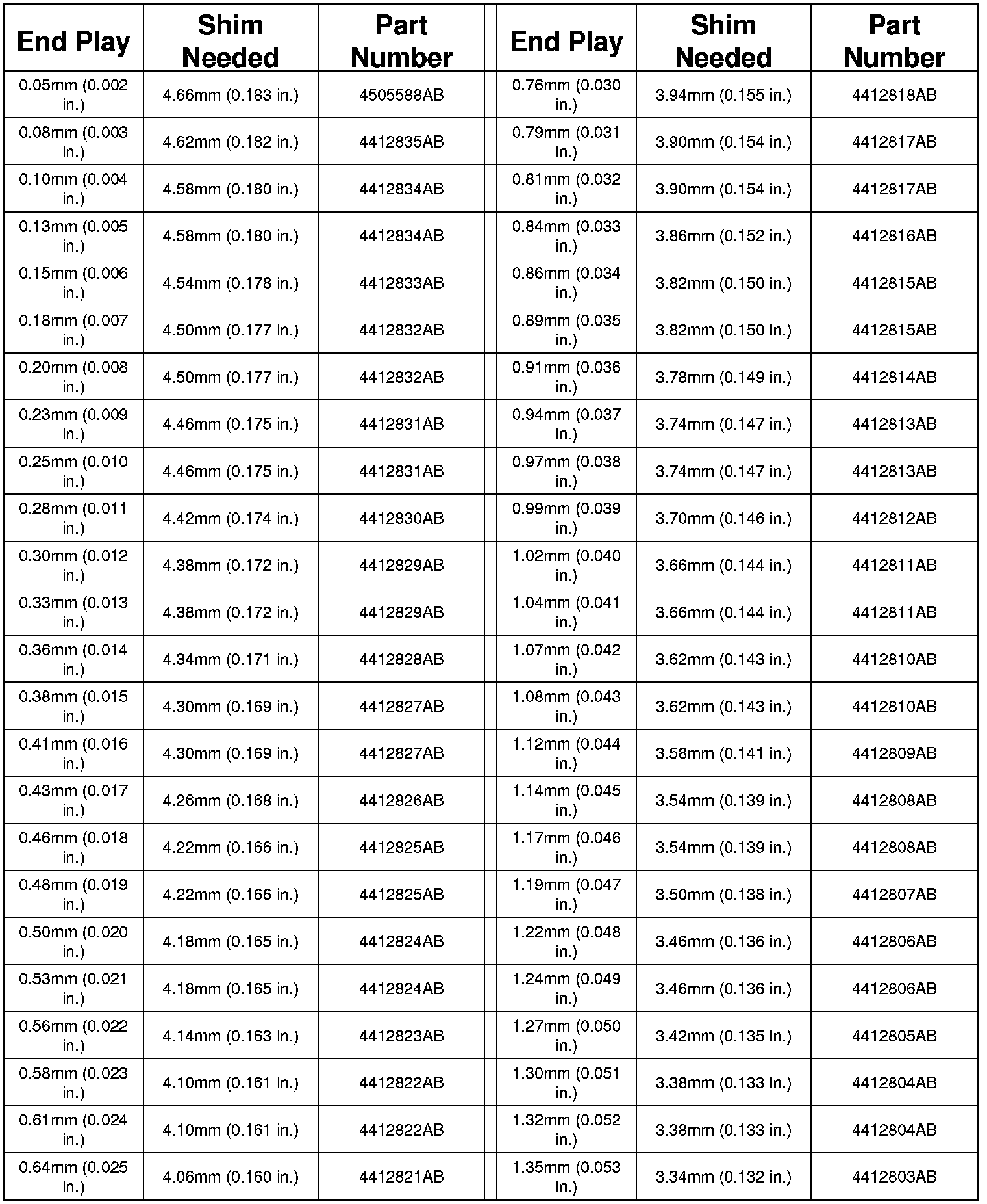 g. Refer to the transfer shaft bearing shim chart for the required shim combination to obtain the proper bearing setting.