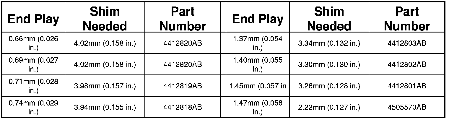 i. Remove the gauging shim and install the proper shim indicated by the chart.