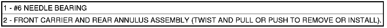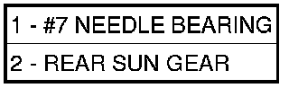 NOTE: The number seven needle bearing (1) has three anti-reversal tabs and is common with the number five and number two position. The orientation should allow the bearing to seat flat against the rear sun gear. A small amount of petrolatum can be used to hold the bearing to the rear sun gear.
