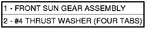 57. Install front sun gear assembly (1) and #4 thrust washer (2).