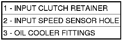 59. Install input clutch assembly into position and verify that it is completely seated by viewing through input speed sensor hole. View through input speed sensor hole (2), if not as shown in picture, the input clutch assembly is not seated properly.
