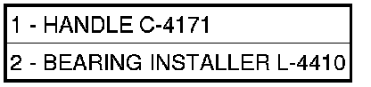 11. Using Bearing Installer L-4410 (2) and Handle C-4171 (1), install differential bearing to differential (ring gear side).