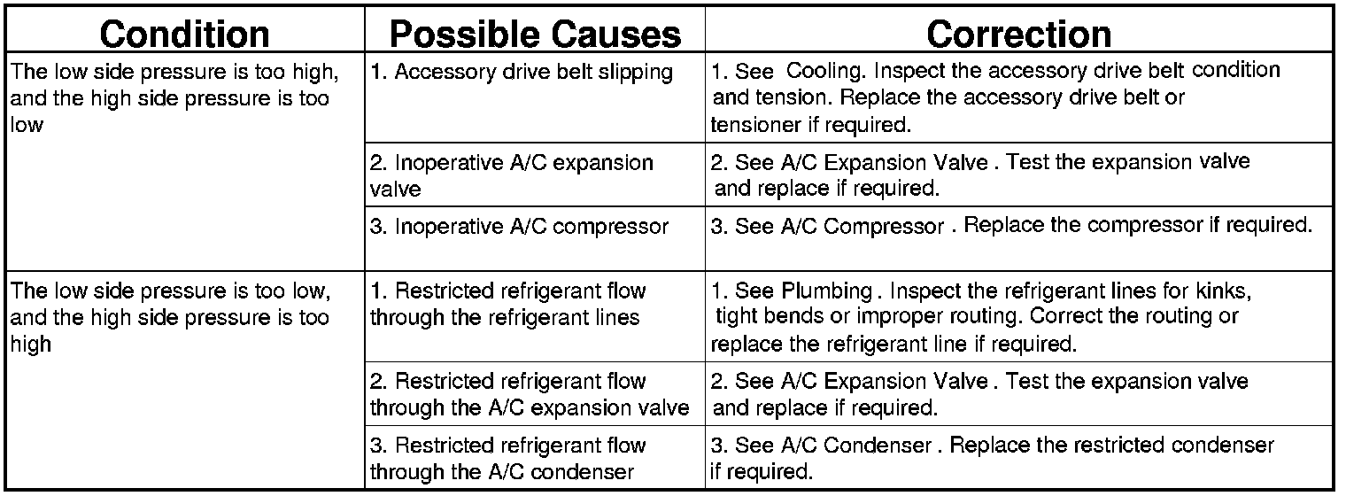 A/C PERFORMANCE TEMPERATURE AND PRESSURE