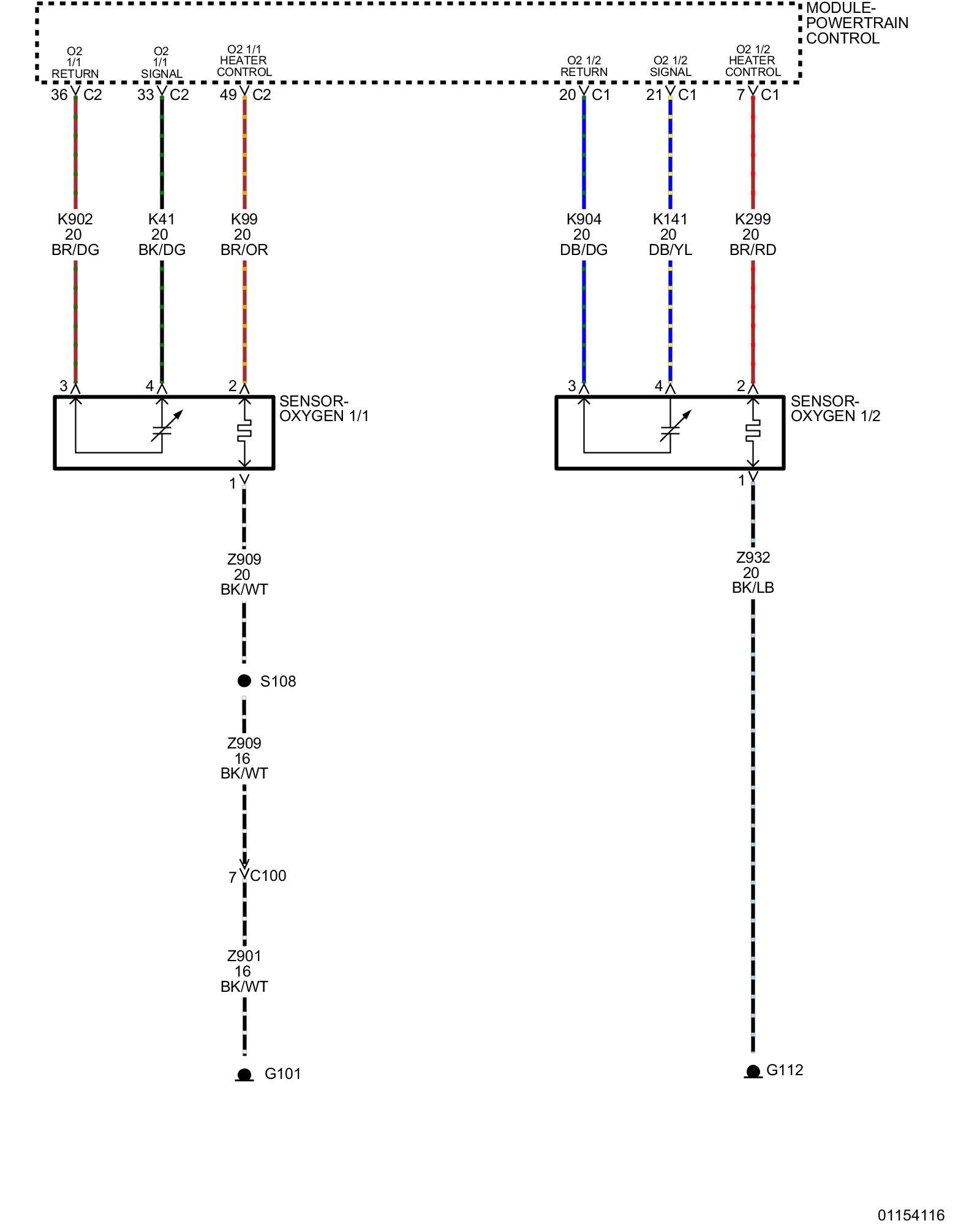 1. Using the wiring diagram/schematic as a guide, inspect the wiring and connectors between the O2 sensor and the PCM.