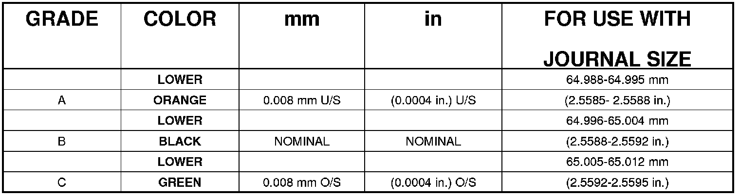 Bearing Clearance 0.023 - 0.051 mm (0.0009 - 0.002 in.)