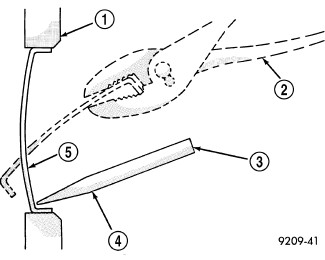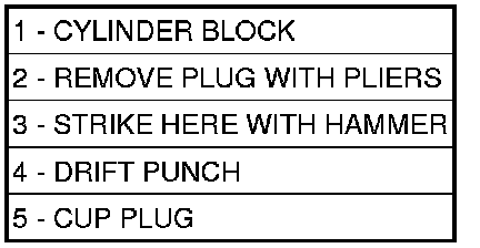 Using a blunt tool such as a drift (3) and a hammer, strike the bottom edge of the cup plug (5). With the cup plug rotated, grasp firmly with pliers (2) or other suitable tool and remove plug (5).