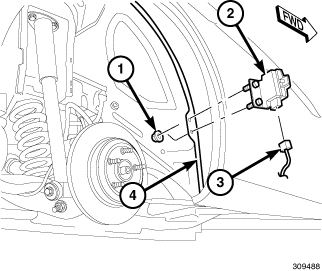 1. Position the Tire Pressure Monitoring (TPM) Module (2) on body seam flange (4) and install mounting nuts (1).