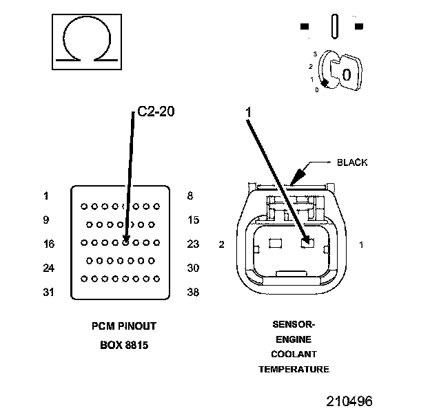 1. Using the wiring diagram/schematic as a guide, inspect the wiring and connectors between the Engine Coolant Temperature Sensor and the Powertrain Control Module (PCM).