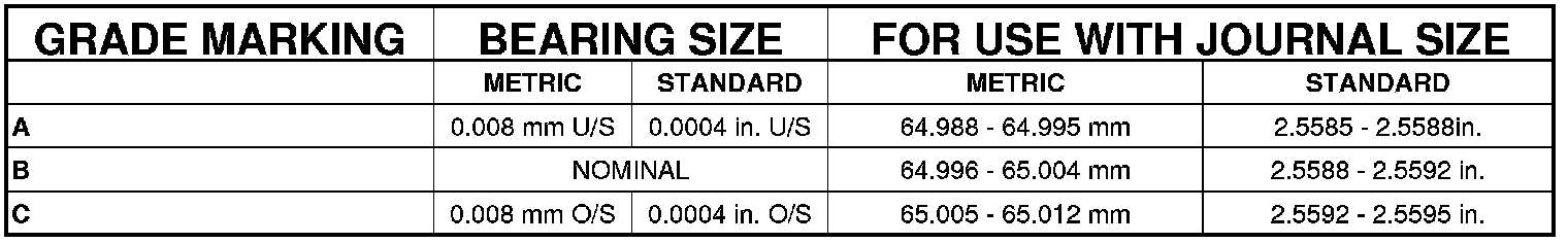 Bearing Clearance 0.023 - 0.051 mm (0.0009 - 0.002 in.)