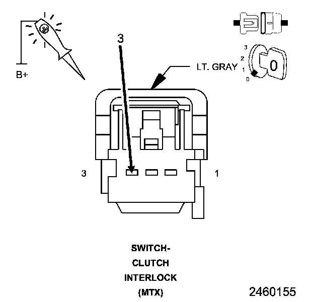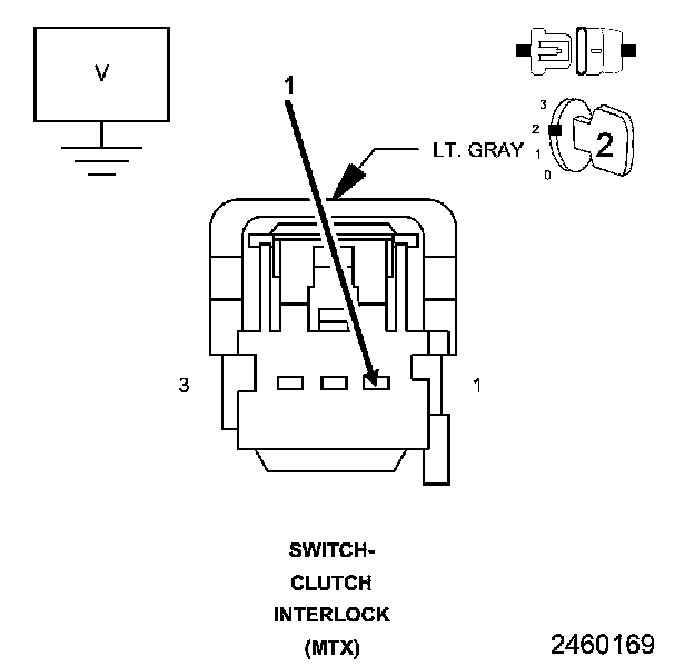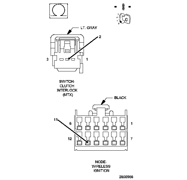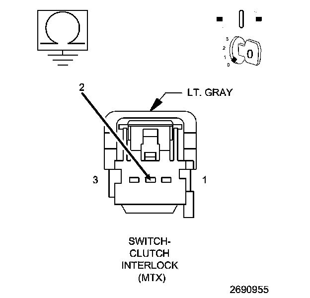 1. Using the wiring diagram/schematic as a guide, inspect the wiring and connectors between the Clutch Interlock Switch and the WIN.