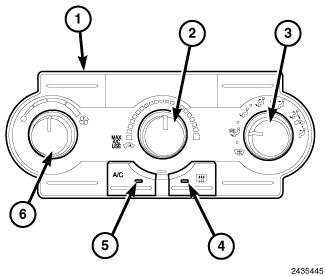 - a push button A/C on/off control (5). The A/C button contains an LED that illuminates when the A/C system is in operation.