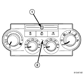 The infrared sensor is used only on models equipped with the automatic temperature control (ATC) heating -A/C system. The infrared temperature sensor consists of a infrared transducer concealed behind a clear lens (1) located within the instrument panel mounted A/C-heater control (2).