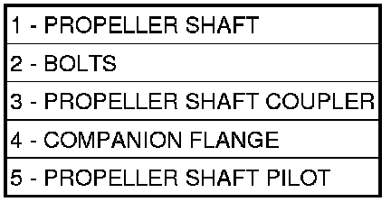 5. Slide the propeller shaft (1) rearward until the coupler clears the propeller shaft pilot (5) on the transmission output shaft.
